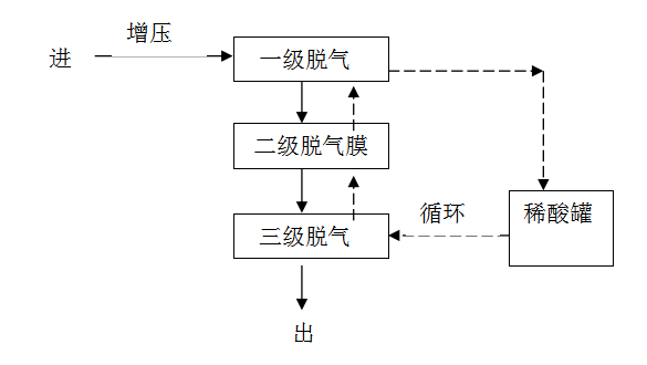 采用進(jìn)稀酸吸附的稀酸可以是稀硫酸,濃度為15%左右,稀酸為打循環(huán)回流,直至飽和后再排放或回收,按經(jīng)驗(yàn)值一般含氨氮濃度為8~10g/L的廢水,稀酸與含氨氮廢水處理比例大約為1:15,(即處理15噸含氨氮濃度為8~9g/L的廢水需要1噸15%的稀酸)。