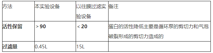 某種抗生素純化膜過(guò)濾運(yùn)行2小時(shí)(分子量為10萬(wàn)道爾頓左右,對(duì)剪切力敏感)